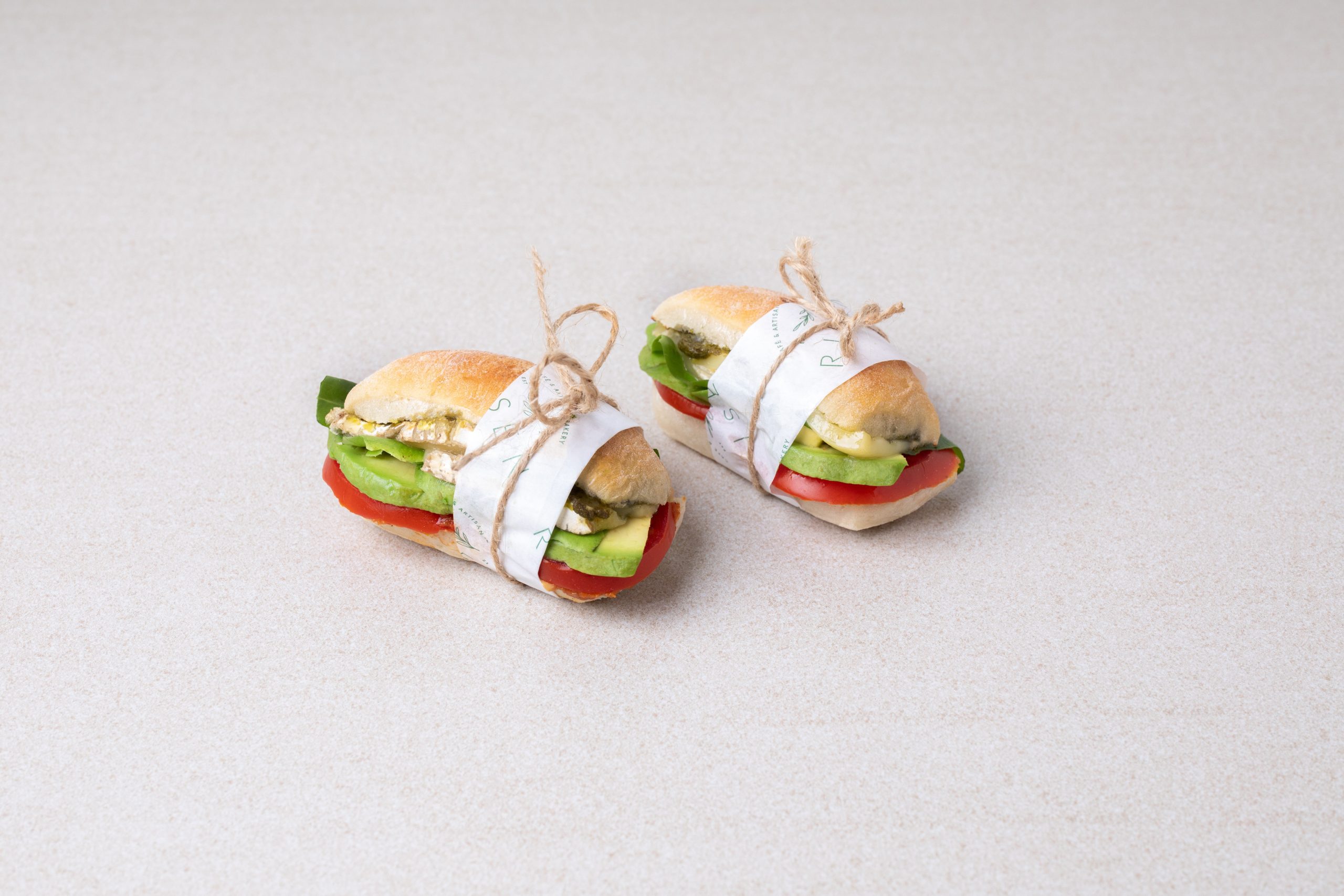 Ciabatta, avocado, Brie cheese, tomato, lettuce, basil pesto & Ajvar sauce.