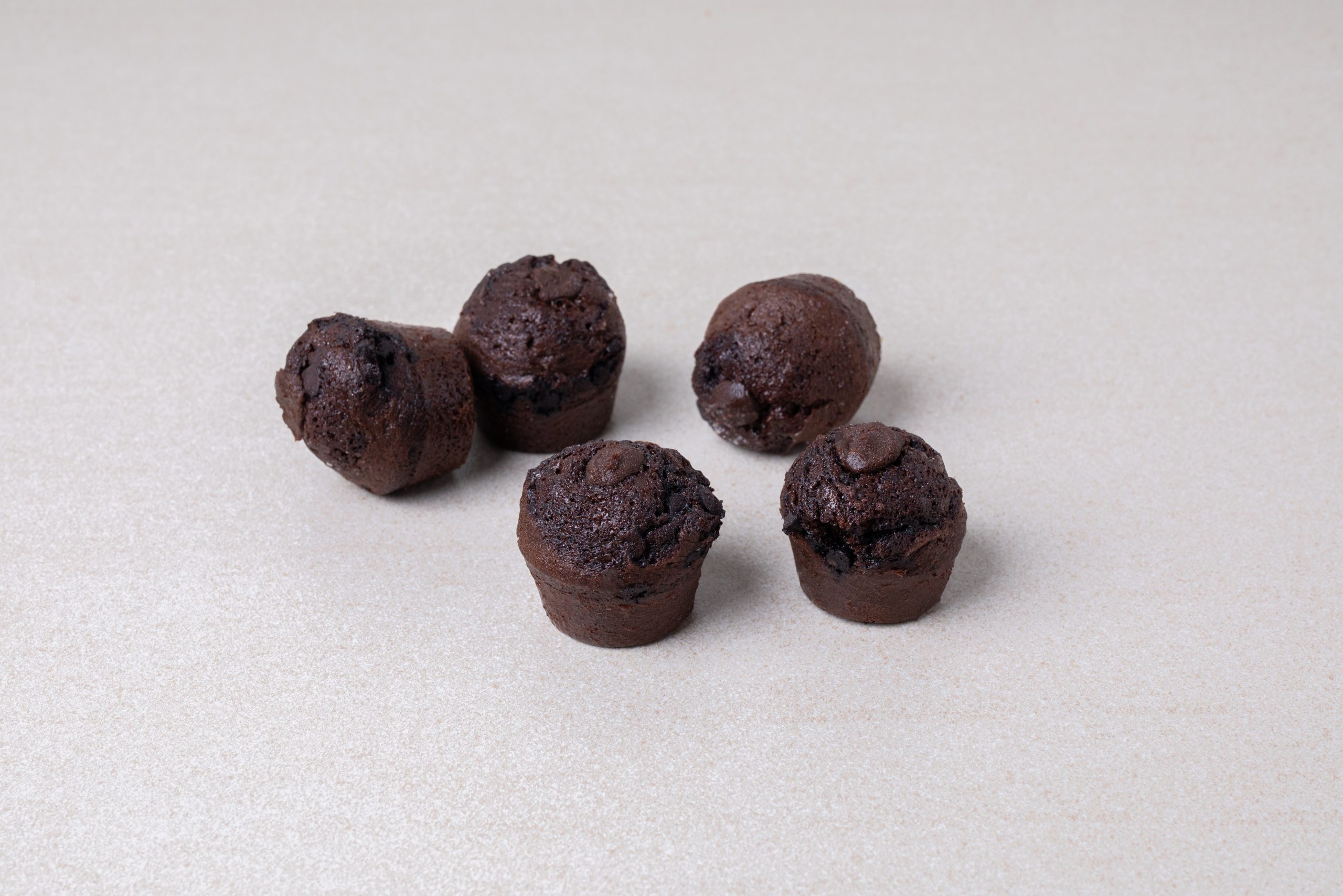 Tender and sweet muffins with chocolate chips and filled with dark chocolate ganache.
