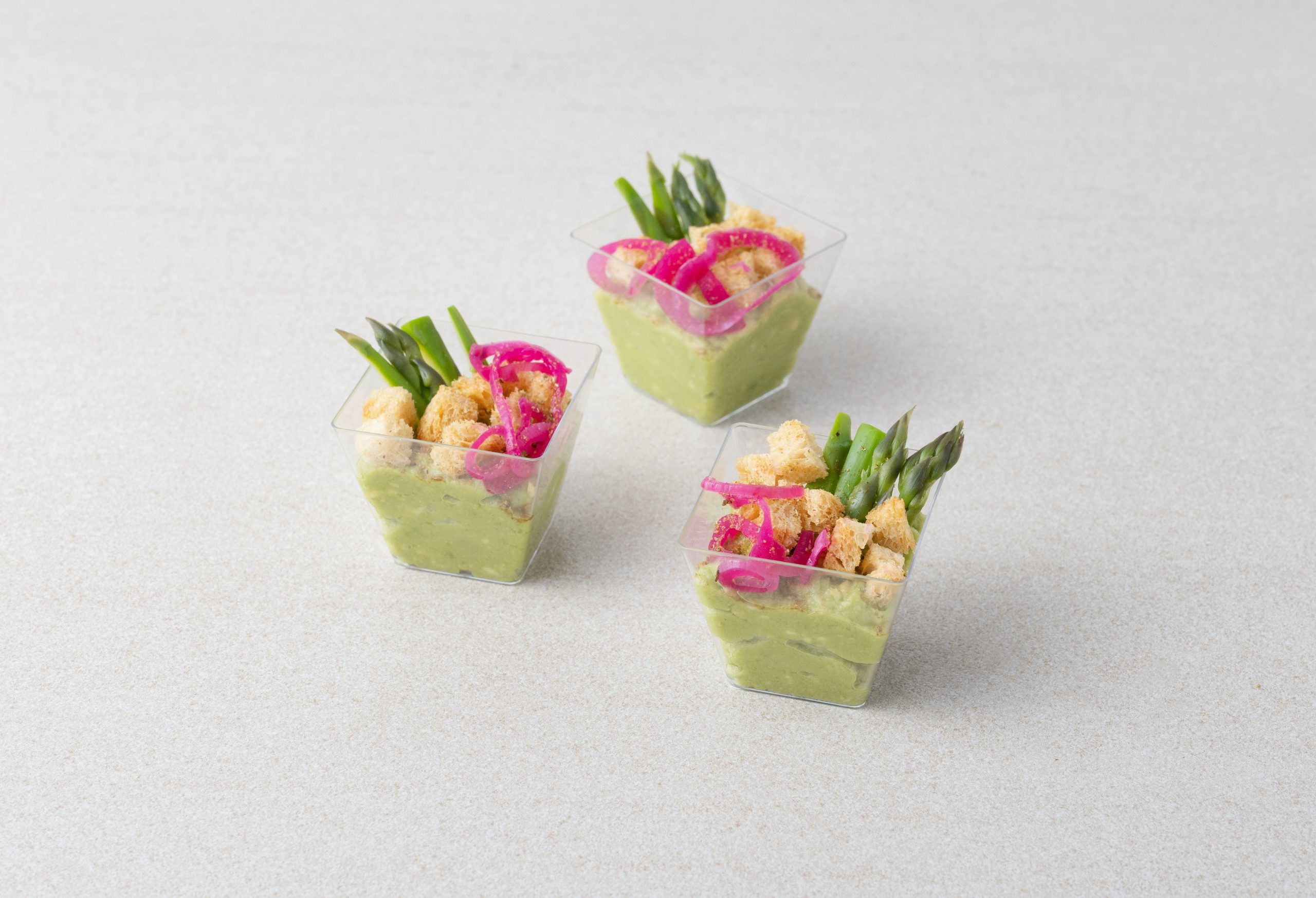 Toasted rye bread, dukkha-spiced smashed avocado, pickled red onion, charred asparagus & yuzu dressing.