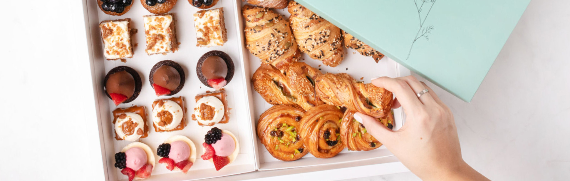 Indulge from a range of freshly baked breads, pastries, gourmet sandwiches, salads and much more.
